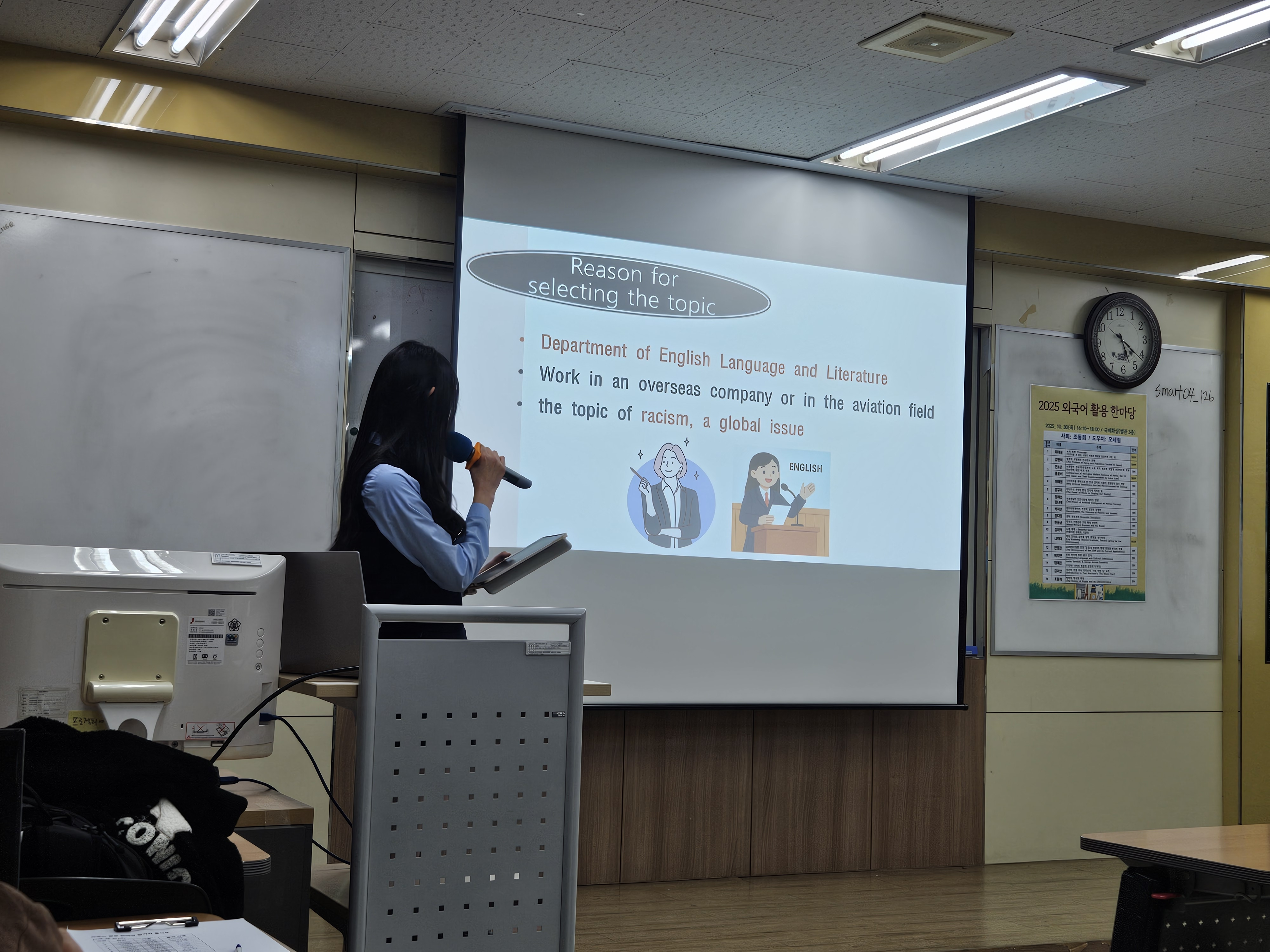 ¶ÇÇÑ Çà»ç ÁøÇàÀ» ÇлýÀÌ Á÷Á¢ ¿µ¾î·Î ¸Ã¾Æ ÀÚ¿¬½º·´°í À¯Ã¢ÇÑ ÁøÇàÀ¸·Î ºÐÀ§±â¸¦ À̲ø¾úÀ¸¸ç, À̸¦ ÅëÇØ ¿Ü±¹¾î ÀÇ»ç¼ÒÅë ´É·ÂÀº ¹°·Ð ÁÖµµ¼º°ú ÀڽۨÀ» ÇÔ²² Ű¿ì´Â ½Ã°£ÀÌ µÇ¾ú´Ù. Çà»ç¿¡ Âü¿©ÇÑ ÇлýµéÀº ¡°¿Ü±¹¾î·Î ³» »ý°¢À» Ç¥ÇöÇÒ ¼ö ÀÖ´Ù´Â °ÍÀÌ »ÑµíÇß°í, ´Ù¸¥ Ä£±¸µéÀÇ ¹«´ë¸¦ º¸¸ç ´õ ¹è¿ì°í ½Í´Ù´Â ¿Á¤ÀÌ »ý°å´Ù¡±°í ¸»Çß´Ù.