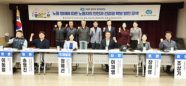 ÀÌÀ翵 °æ±âµµÀÇȸ °æÁ¦³ëµ¿À§¿øÈ¸ À§¿ø(´õºÒ¾î¹ÎÁÖ´ç, ºÎõ3)ÀÌ ÁÂÀåÀ» ¸ÃÀº ¡¸³ëµ¿ ÇüÅ¿¡ µû¸¥ ³ëµ¿ÀÚÀÇ ¾ÈÀü°ú °Ç°±Ç È®º¸ ¹æ¾È ¸ð»ö¡¹À» À§ÇÑ Åä·Ðȸ°¡ 10¿ù 31ÀÏ(±Ý) ºÎõ½Ãû ¼ÒÅ븶´ç¿¡¼ °³ÃֵƴÙ.