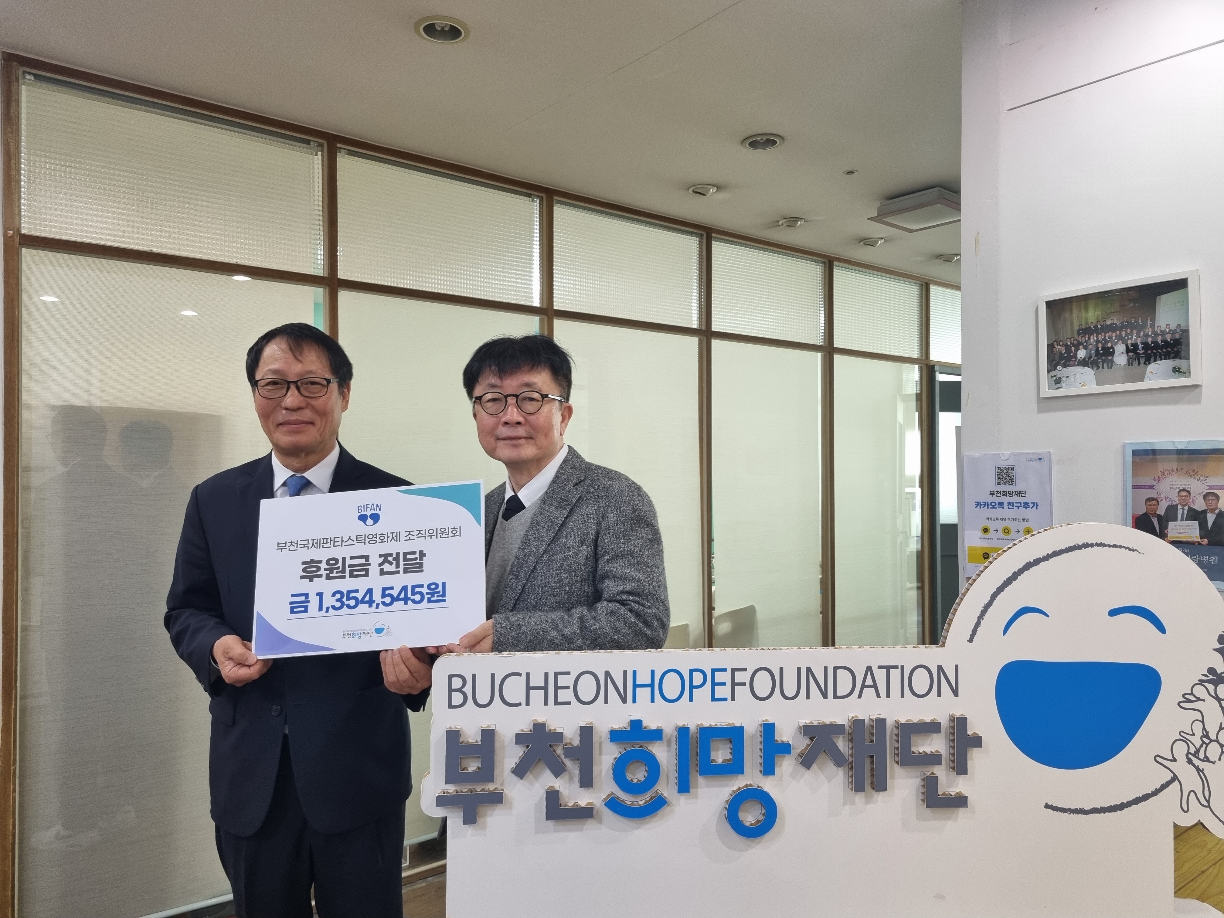 ºÎõÈñ¸ÁÀç´Ü(ÀÌ»çÀå ±Ç¼¼±¤)Àº ºÎõ±¹Á¦ÆÇŸ½ºÆ½¿µÈ­Á¦ Á¶Á÷À§¿øÈ¸(À§¿øÀå ½Åö)°¡ Áö¿ª»çȸ ³ª´® ¹®È­ È®»êÀ» À§ÇØ 1,354,545¿øÀ» ±âŹÇß´Ù°í 11¿ù 6ÀÏ ¹àÇû´Ù.