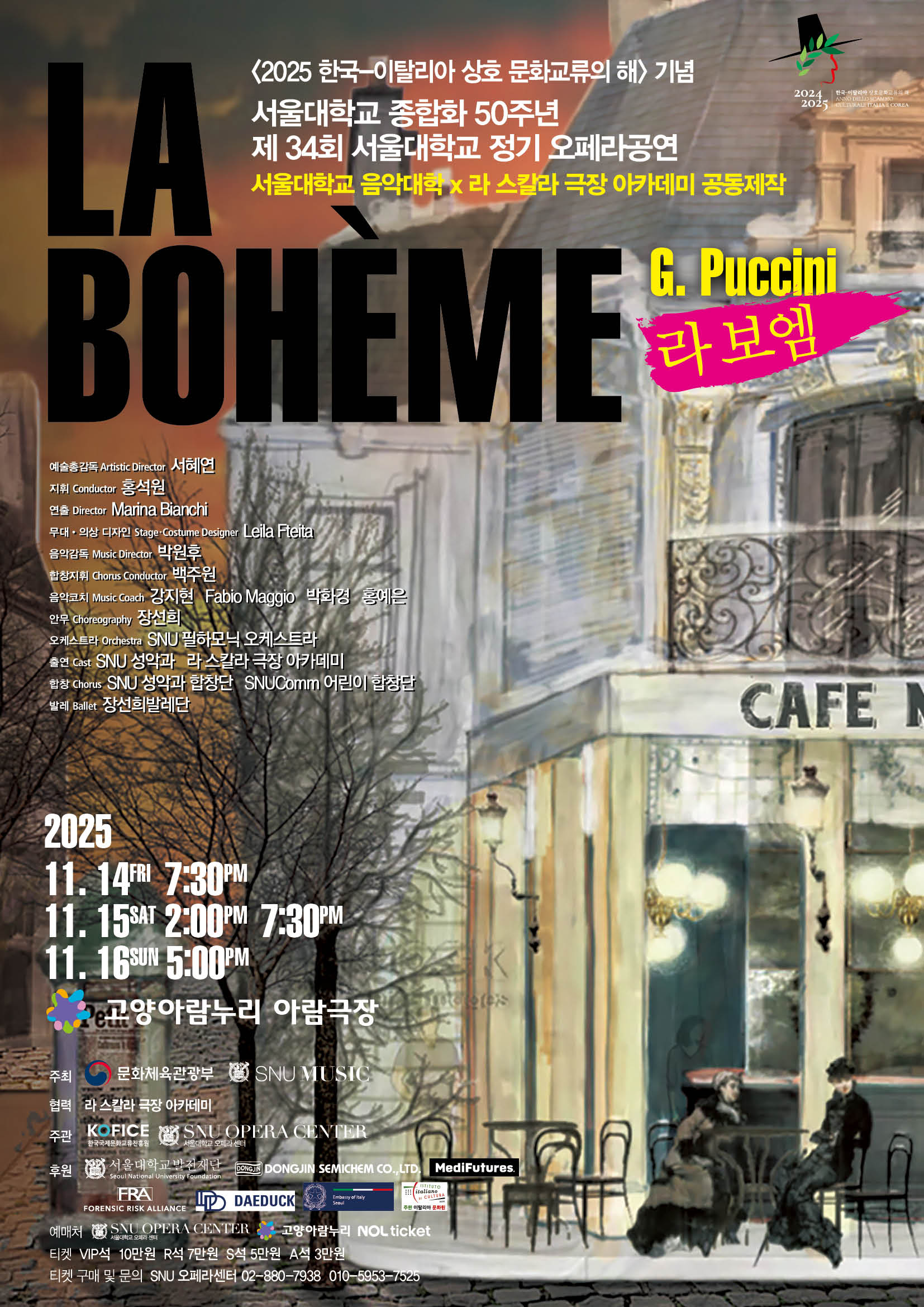 ½ÃÈï½Ã(½ÃÀå ÀÓº´ÅÃ)¿Í ¼¿ï´ë ±³À°Çù·Â»ç¾÷ÀÎ ¡®½º´©ÄÞ ÇÕâ´Ü¡¯ÀÌ ¡®2025 Çѱ¹-ÀÌÅ»¸®¾Æ »óÈ£ ¹®È±³·ùÀÇ ÇØ¡¯¸¦ ±â³äÇØ ¼¿ï´ë À½¾Ç´ëÇаú ¶ó ½ºÄ®¶ó ±ØÀå ¾ÆÄ«µ¥¹Ì°¡ °øµ¿À¸·Î Á¦ÀÛÇÏ´Â ¿ÀÆä¶ó ¡®¶ó º¸¿¥(La Boheme)¡¯¿¡ Ưº°Ã⿬ÇÑ´Ù.