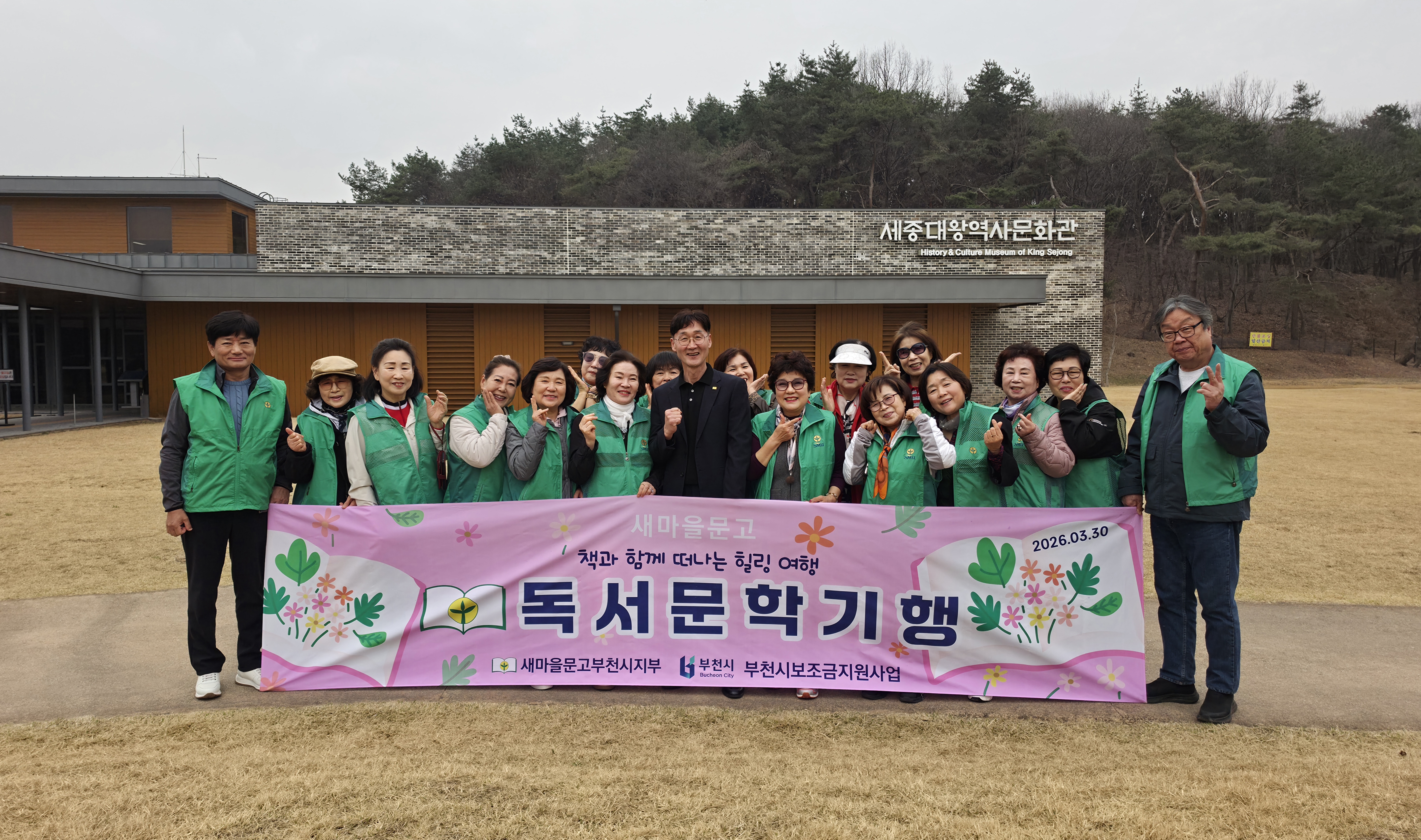 ºÎõ½Ã»õ¸¶À»È¸(ȸÀå Àü¸íȯ)°¡ ÁÖÃÖÇÏ°í »õ¸¶À»¹®°íºÎõ½ÃÁöºÎ(ȸÀå ±è±¤¿î)°¡ ÁÖ°üÇÏ´Â ¿À°¨À¸·Î ¸¸³ª´Â µ¶¼­¹®ÇбâÇàÀÌ 3¿ù 30ÀÏ(¿ù) °æ±âµµ ¿©Áֽà ¼¼Á¾´ë¿Õ¿ª»ç¹®È­°ü ÀÏ¿ø¿¡¼­ ÁøÇàµÆ´Ù.