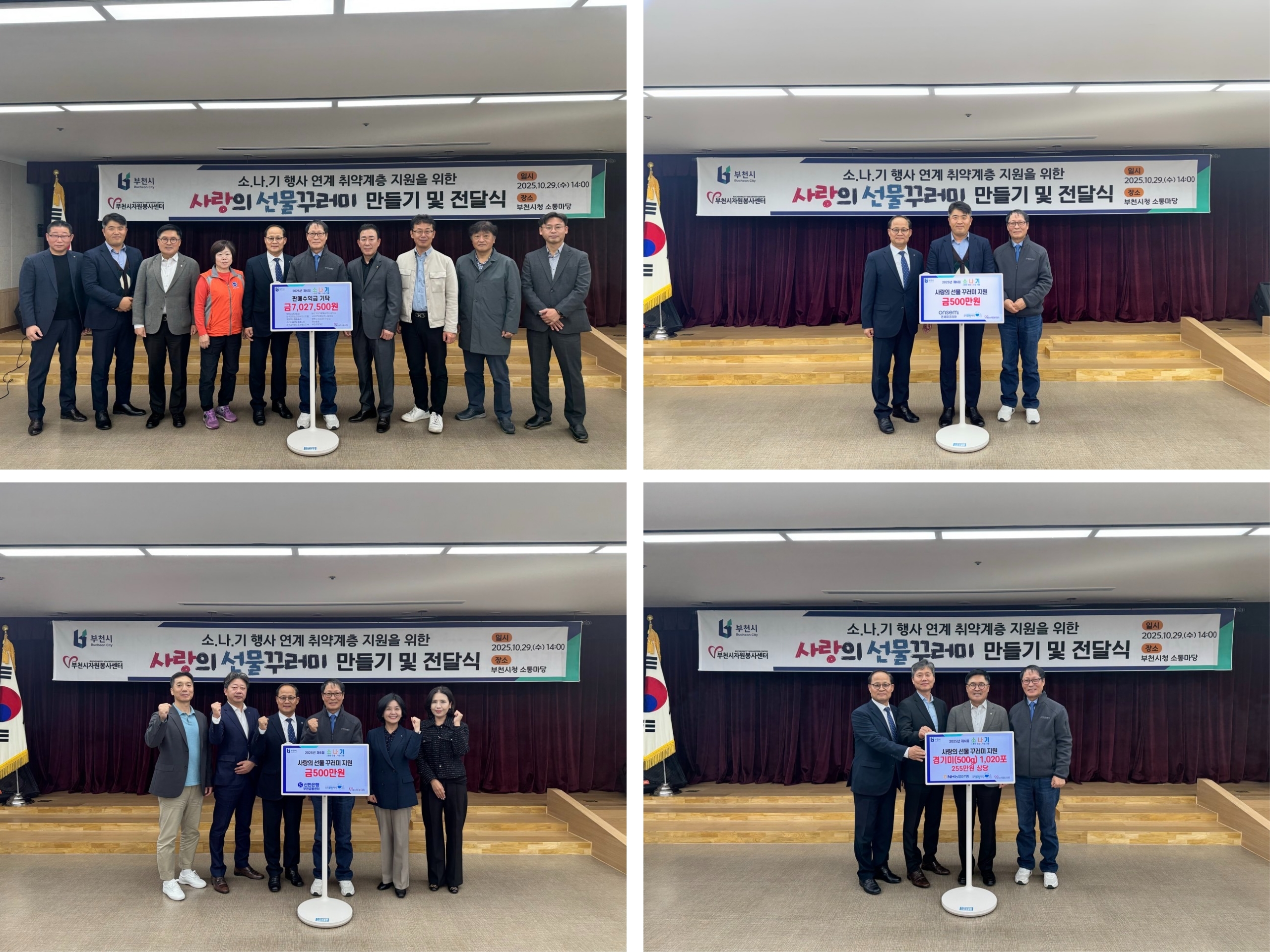ºÎõ½Ã´Â Áö³ 29ÀÏ °£Æí½Ä°ú »ýÇÊǰÀ¸·Î ±¸¼ºµÈ ¡®»ç¶ûÀÇ ¼±¹°²Ù·¯¹Ì¡¯ 400¼¼Æ®¸¦ ÀÚ¿øºÀ»çÀÚµéÀÌ Á÷Á¢ Á¦ÀÛÇØ Áö¿ª ³» Ãë¾à°èÃþ µ¶°Å³ëÀο¡°Ô Àü´ÞÇß´Ù.